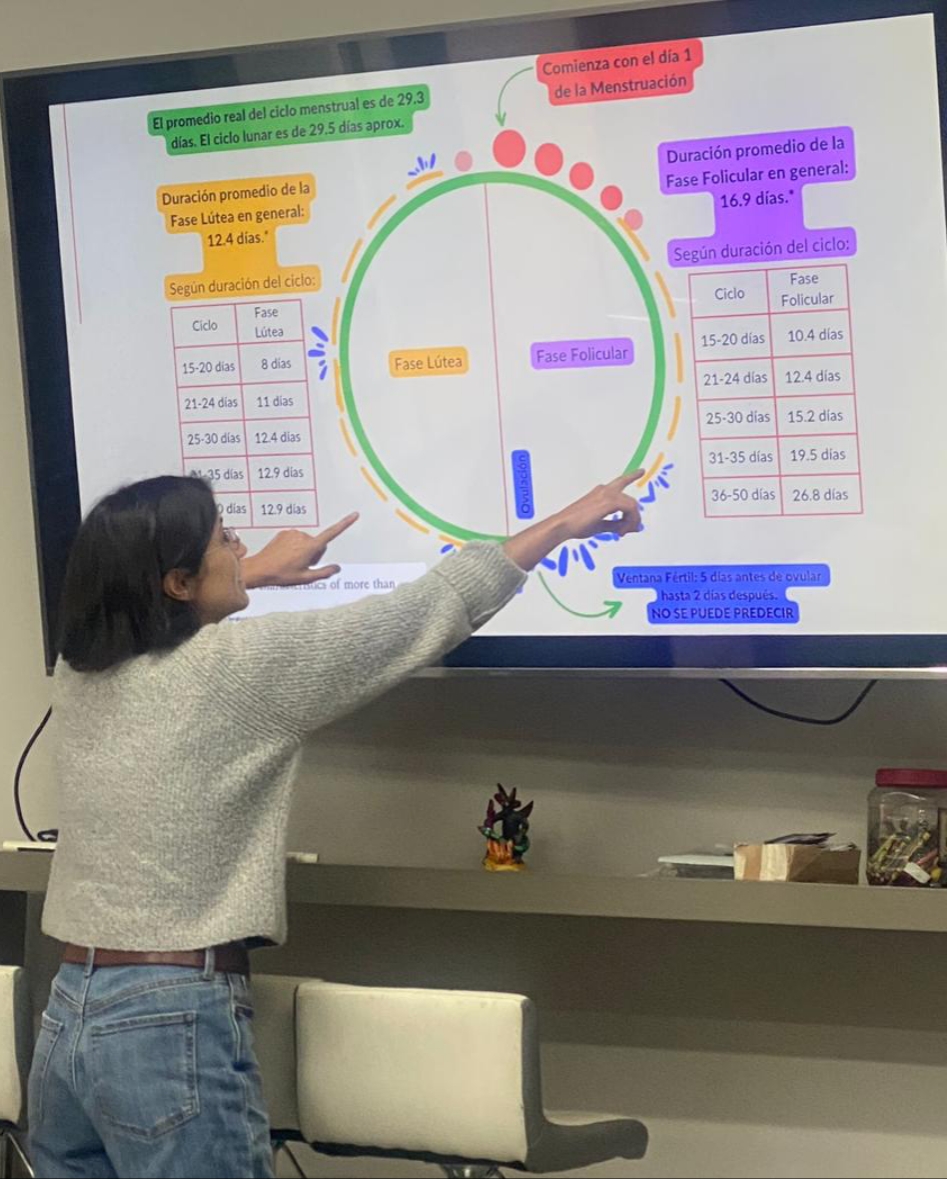 Educación en salud menstrual para escuelas de nivel básico, medio y superior. Esto también incluye formación para docentes, familias y cuidadores. El objetivo es preparar a la próxima generación para que comprendan completamente sus cuerpos sin sesgos ni tabúes. Lo hacemos a través de información basada en evidencia, recursos educativos y actividades grupales.